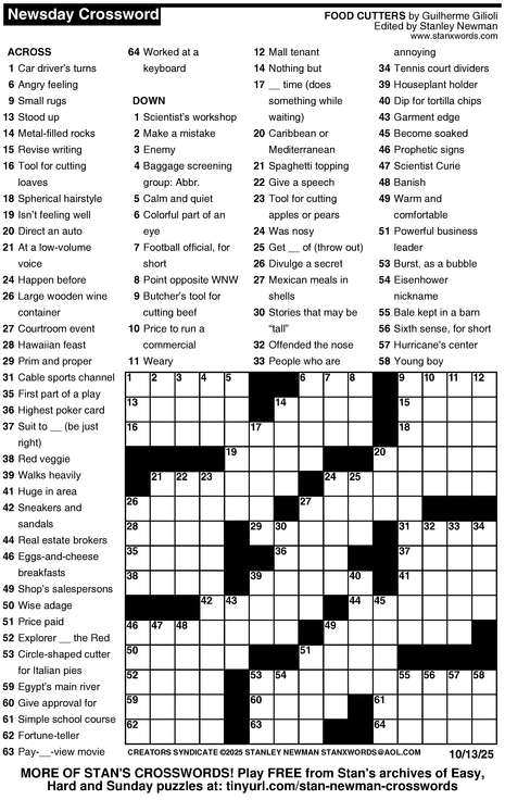Crossword for 10/13/2025