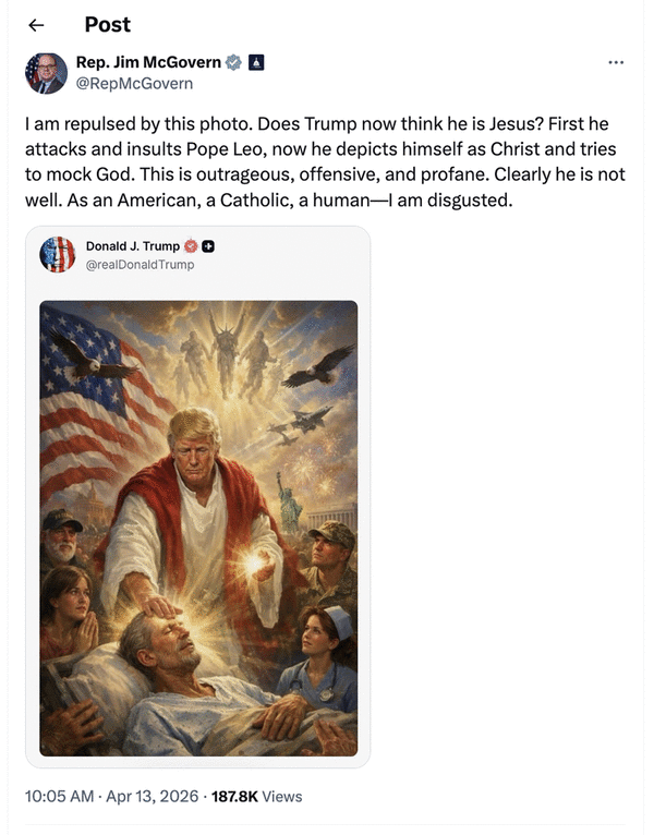 Former Rep. Marjorie Taylor Greene, R-Ga., a former staunch Trump-ally-turned-critic, slammed the post on X. “On Orthodox Easter, President Trump attacked the Pope because the Pope is rightly against Trump’s war in Iran and then he posted this picture of himself as if he is replacing Jesus,” Greene wrote. “This comes after last week’s post of his evil tirade on Easter and then threatening to kill an entire civilization. I completely denounce this and I’m praying against it!!!”