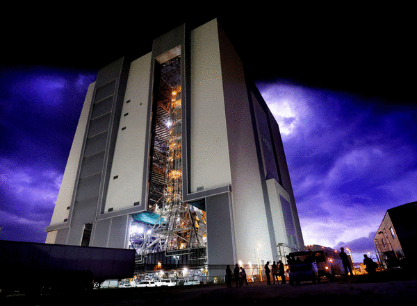 Teams completed the stacking of the Orion spacecraft atop the Space Launch System (SLS) rocket at Kennedy Space Center’s Vehicle Assembly Building this week.