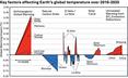Air pollution: Sulfate aerosol pollution from coal combustion and burning heavy fuel oil in shipping has also been affecting Earth’s energy balance. It has been masking the full effects of human-caused greenhouse gases for years by reflecting sunlight back into space, creating a cooling effect. But sulfate aerosol pollution is also a serious health hazard, blamed for about 8 million human deaths per year from lung diseases.