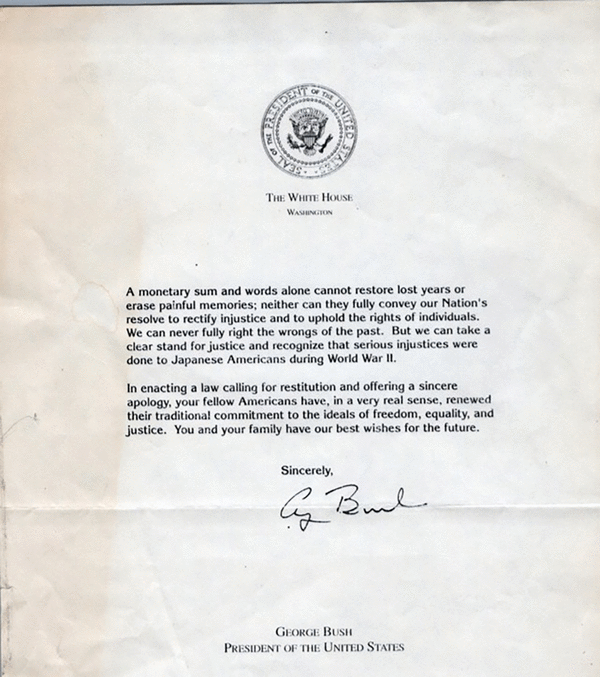 While emptying out my parents’ house, I found relics of their incarceration — my mom’s prisoner identification, pictures of my parents as small children in stark barracks and a copy of the apology letter from President George H.W. Bush that recognized the illegal actions of our federal government. They saved these artifacts so we would remember.